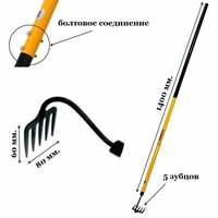 Рабочая часть изготовлено из кованной закаленной стали, выковано в ручную и имеет плоскую форму зубьев. В комплекте идет прочный металлический черенок.