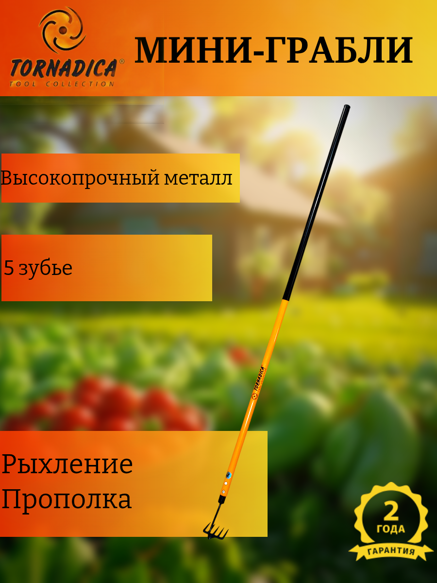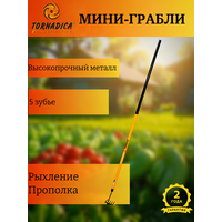 Садовые ручные мини грабли 5 зубьев Торнадика предназначены для уборки опавшей листвы, различных сорняков, травы и мусора между грядками. Они подходят для удаления сорняков, окучивания растений, рыхления и аэрации почвы.