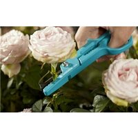 Ножницы для роз GARDENA - четыре функции в одном инструменте: срезание, удерживание, удаление шипов и раздавливание концов стеблей. Лезвия ножниц изготовлены из нержавеющей стали. 25-летняя гарантия подтверждает высочайшее качество продукции.