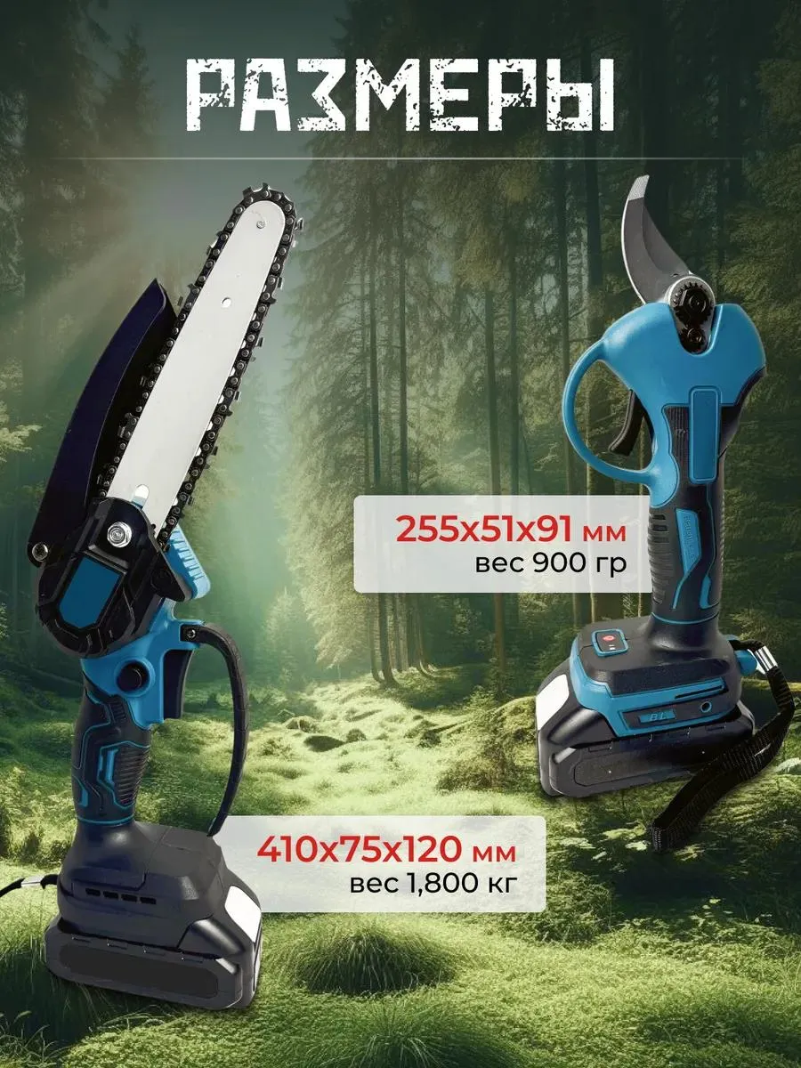| Комплект поставки | Пила аккумуляторная ручная - 1шт; Цепь износостойкая - 1шт; аккумулятор 2шт; перчатки 2шт; Очки 1шт; Отвертка 1шт; зарядное устройство 1шт; шина для цепи 1шт |