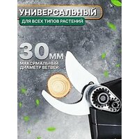 Садовый режущий инструмент прост и удобен в эксплуатации, а его эффективность в 8-10 раз выше, чем у традиционных ручных секаторов. Садовые ножницы обладают режущим лезвием из стали, что отличает их высокой твердостью, коррозионной стойкостью, износостойкостью. Максимальный диаметр веток - 30 мм. Секатор аккумуляторный садовый может использоваться для сбора урожая, садового дизайна, обрезки цветов и т. д. Комплектация: секатор электрический, 2 аккумулятора, 2 ключа, зарядное устройство, кейс для хранения.