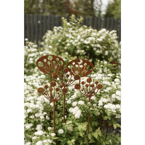 Внесезонный, идеально сочетается в настольных композициях как с живыми цветами, так и с осенними из сухоцветов и натуральных материалов типа мха, камней, еловых веток и шишек и тп. Можно использовать в рамках клумб, если подобрать подходящий цветочный ансамбль по соседству. Стики выполнены из качественного железа. Он прослужит Вам многие годы. Не боится погодных условий и перепадов температур. Благодаря эффекту ржавчины идеально впишется в абсолютно любые композиции, а в сочетании с деревом, бетоном и зеленью смотрится невероятно эффектно.