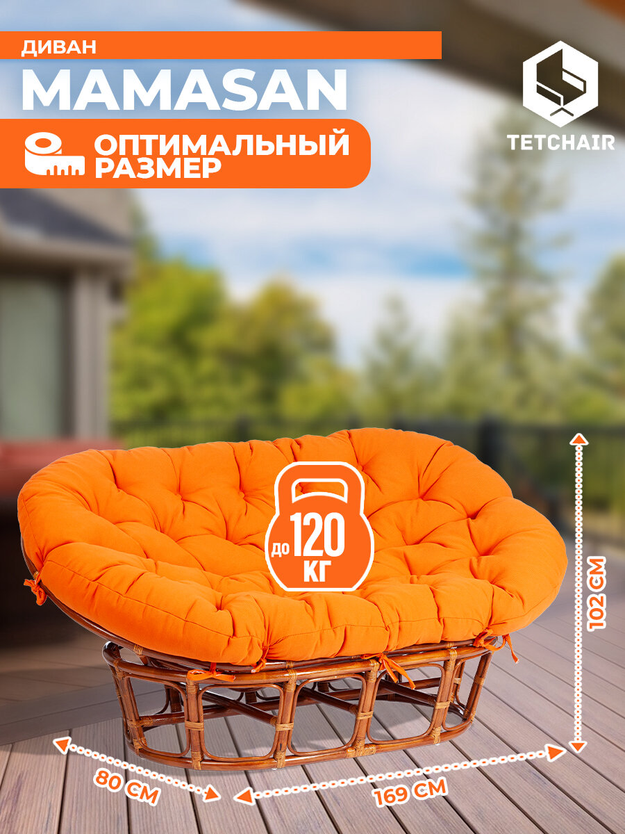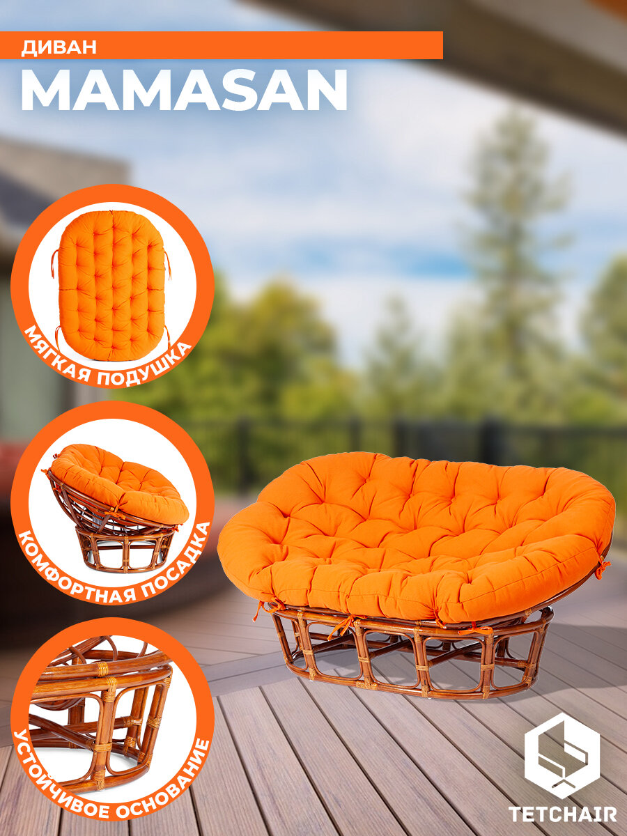 Садовый диван с подушкой TetChair MAMASAN/мамасан, ротанг натуральный, коньяк, ткань оранжевый: сравнение цен, характеристики, фото, актуальное наличие и цены.