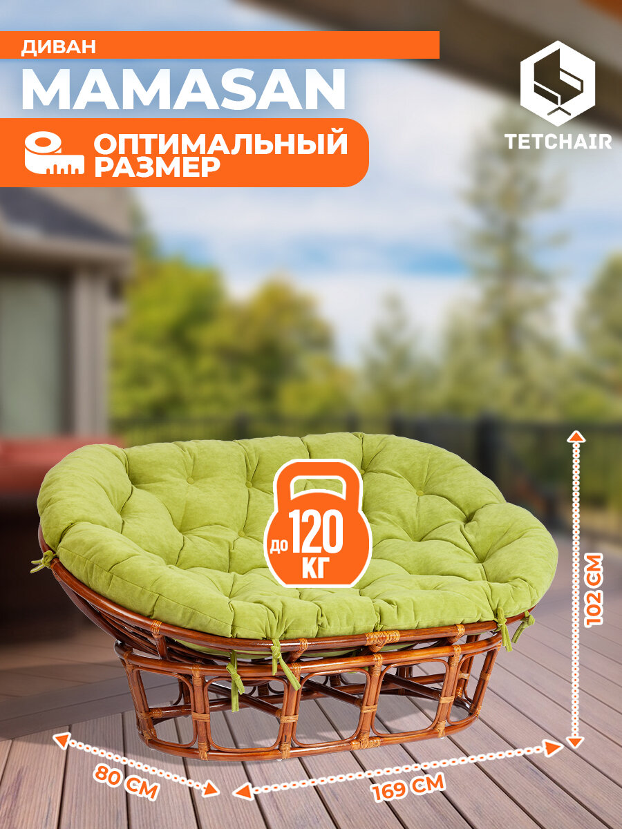 Садовый диван TetChair MAMASAN/мамасан, ротанг натуральный, с подушкой коньяк, флок олива: сравнение цен, характеристики, фото, актуальное наличие и цены.