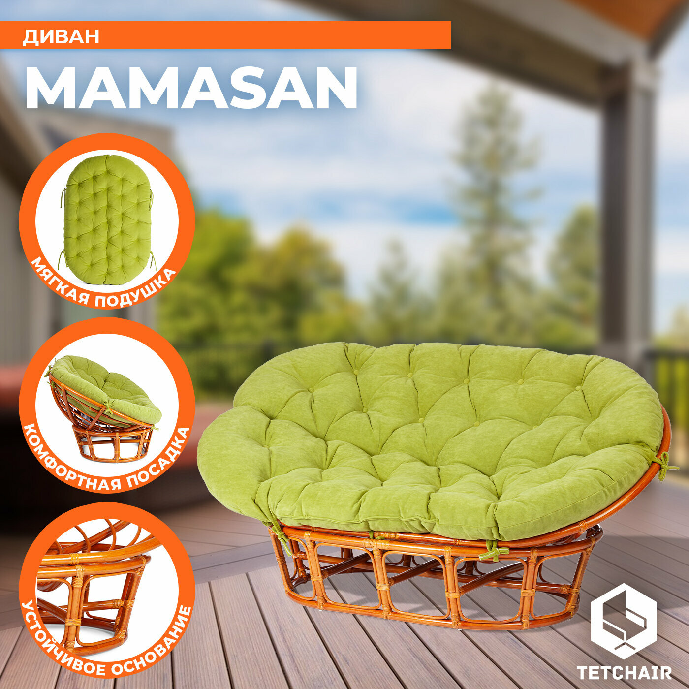 Садовый диван TetChair MAMASAN/мамасан, ротанг натуральный, с подушкой, мед, флок- олива: сравнение цен, характеристики, фото, актуальное наличие и цены.