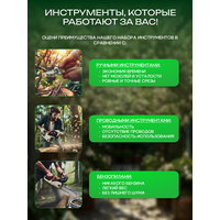 Этот набор станет отличным подарком для практичных людей, ценящих функциональность и надежность. Он заменит вам топор, ножовку и кусторез. Компактные размеры и малый вес делают инструменты удобными для использования как для него, так и для нее. Набор аккумуляторных инструментов будет отличным подарком для тех, кто ценит качество и практичность!