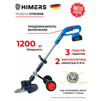 Садовый триммер HIMERS DTR1200B аккумуляторный 24V, 2 АКБ по 9 А. ч, 1200вт, 18000 об/мин