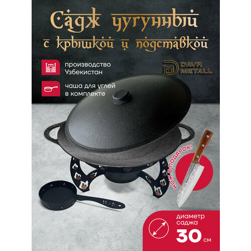 Садж чугунный 30 см с подставкой со съемной угольницей и крышкой (нож в подарок): сравнение цен, характеристики, фото, актуальное наличие и цены.