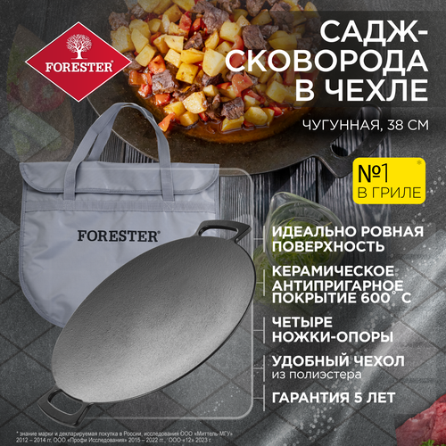 Купить Садж-сковорода чугунная с керамическим антипригарным покрытием, FORESTER, для гриля, 38 см, в чехле с доставкой по всей России.