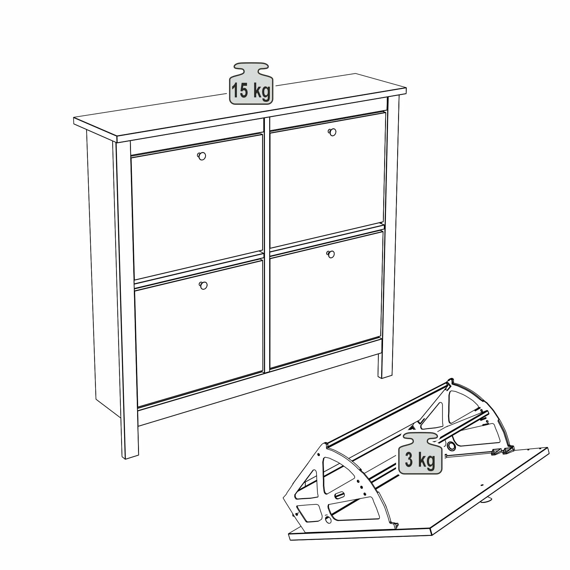 Главная особенность тумбы — четыре откидывающихся полки, на которых можно с комфортом разместить до двенадцати пар обуви. Это позволяет легко доставать и убирать обувь, сохраняя ее в идеальном состоянии. Тумба оснащена надежным магнитными фиксаторами, которые обеспечивают безопасность и предотвращает случайное падение полки. Вы можете быть уверены, что обувь останется на своем месте.