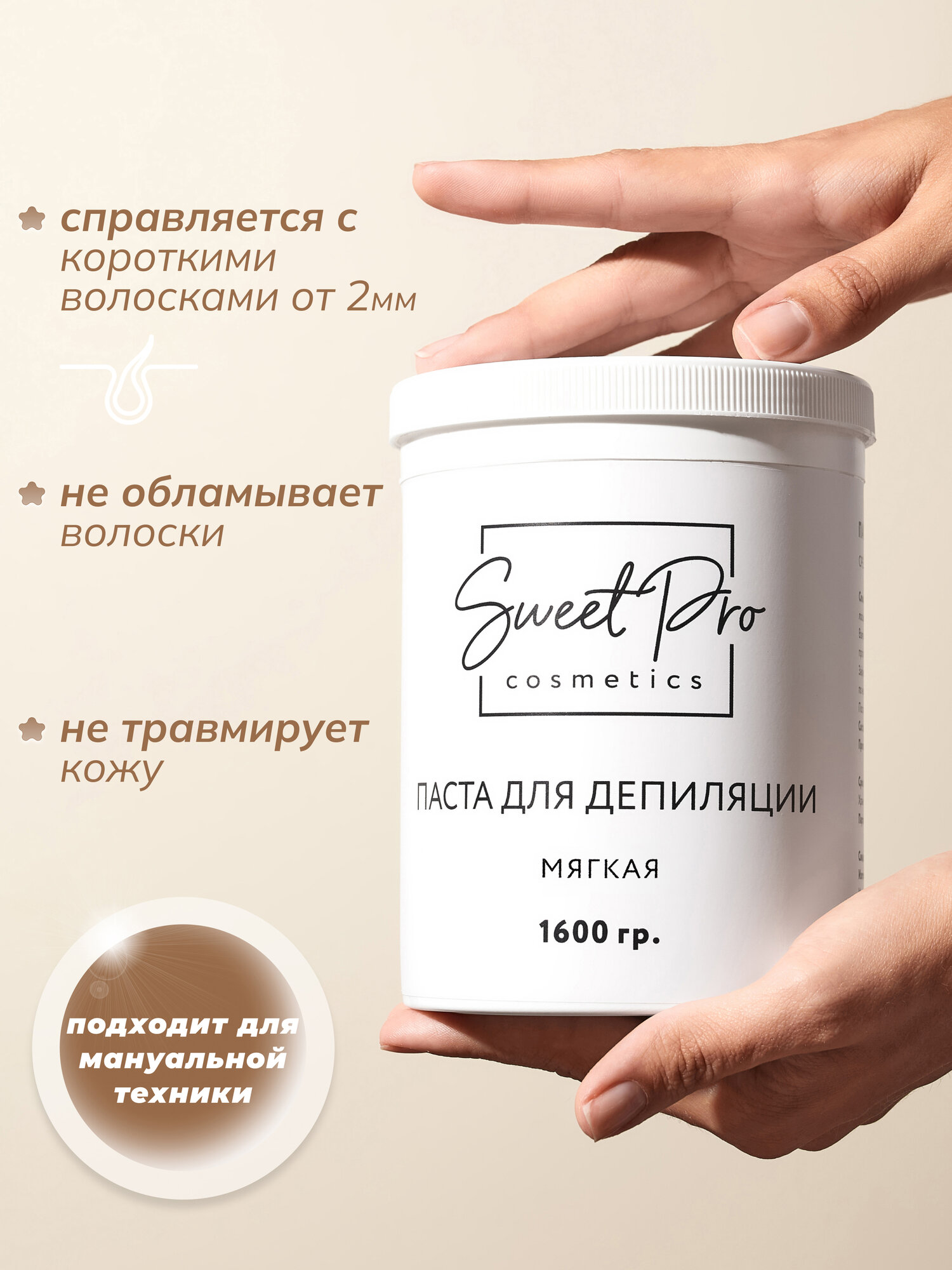 Хотите получить идеально гладкую кожу без лишних волосков? Тогда обратите внимание на профессиональную сахарную пасту для шугаринга Sweet Pro. Пластичная, низкоадгезивная, позволяет провести более 25 процедур депиляции бикини с одной банки. Наша паста идеально подходит для любых зон: руки, ноги, спина, грудь, усики, подмышки, бакенбарды. Благодаря натуральным компонентам, таким как сахар, она не только эффективно удаляет волосы, но и ухаживает за вашей кожей. Забудьте о боли и раздражении с процедурой sugaring & spa. Эпиляция с помощью сахарной пасты станет приятным процессом, как в кабинете мастера, так и дома. Выбирайте качественный профессиональный продукт для работы, чтобы результат радовал не только вас, но и ваших клиентов. Попробуйте шугаринг с профессиональной сахарной пастой Sweet Pro и наслаждайтесь результатом!