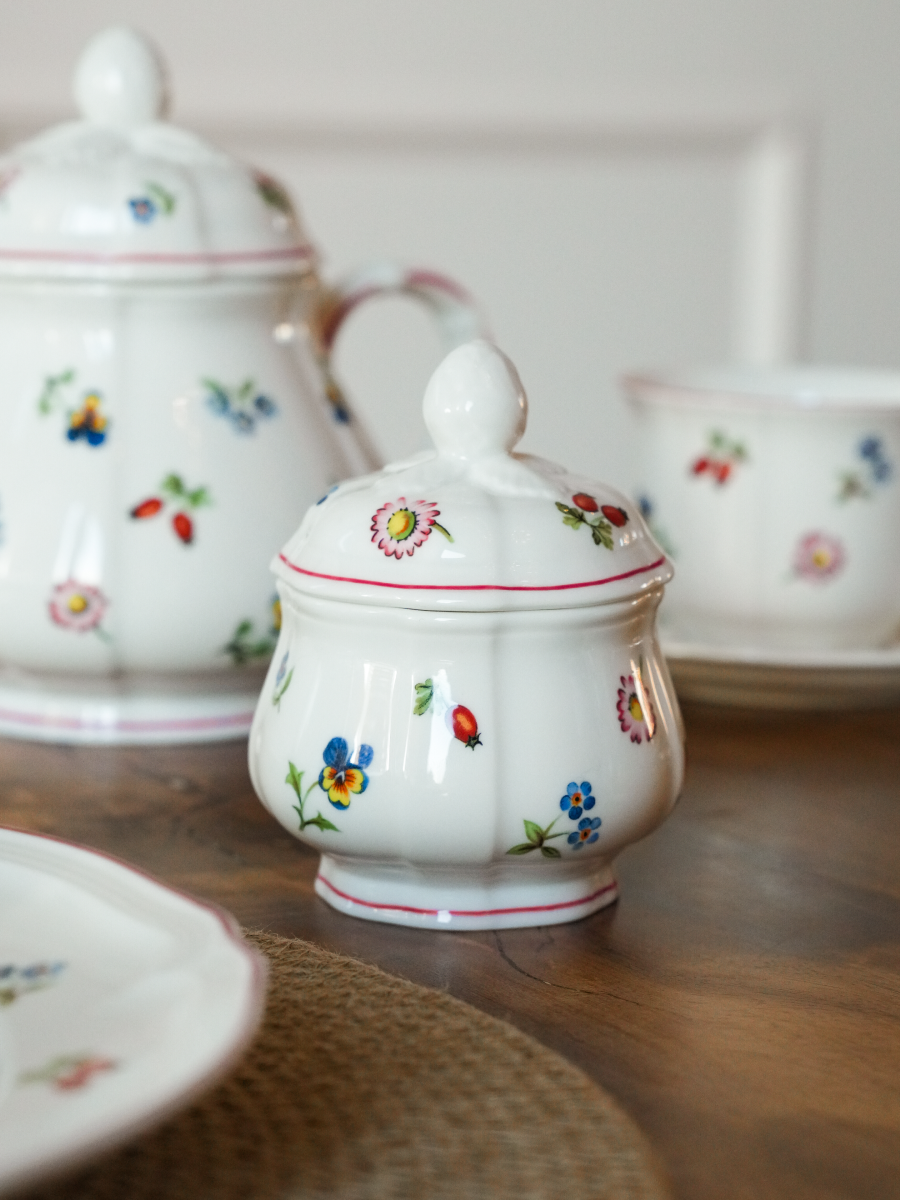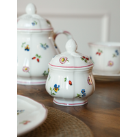 Сахарница из коллекции Petite Fleur от Villeroy & Boch придаст вашему столу совершенный вид и создаст романтичную и солнечную атмосферу. Красивая и элегантная сахарница рядом с большой чашкой чая или кофе подарит вам заряд энергии на весь день. Наслаждайтесь моментом сладкого утреннего счастья, взяв в руки прекрасную сахарницу Petite Fleur!