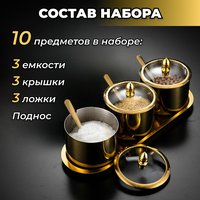 Купить Сахарница / солонка, комплект из 10 предметов для кухни, золотой цвет с доставкой по всей России. Сахарница / солонка, комплект из 10 предметов для кухни, золотой цвет: сравнение цен, характеристики, фото, актуальное наличие и цены.
