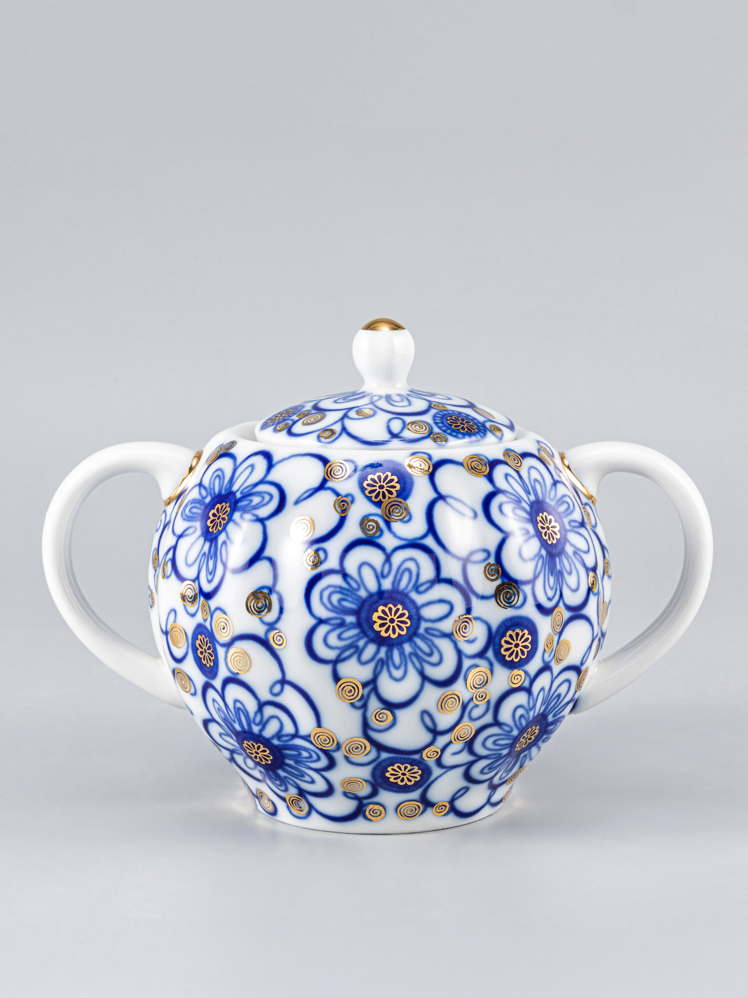 Сахарница, 450 мл. Императорский фарфоровый завод. Форма "Тюльпан", рисунок "Байкал". Твердый фарфор.