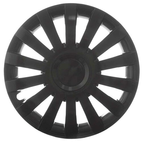 Декоративная поверхность колпаков представляет собой 14 лучевую звезду (лучи прямоугольные), окрашенную в черный цвет. Центральное кольцо также выполнено в черном цвете, что придает аксессуару элегантный и современный вид.