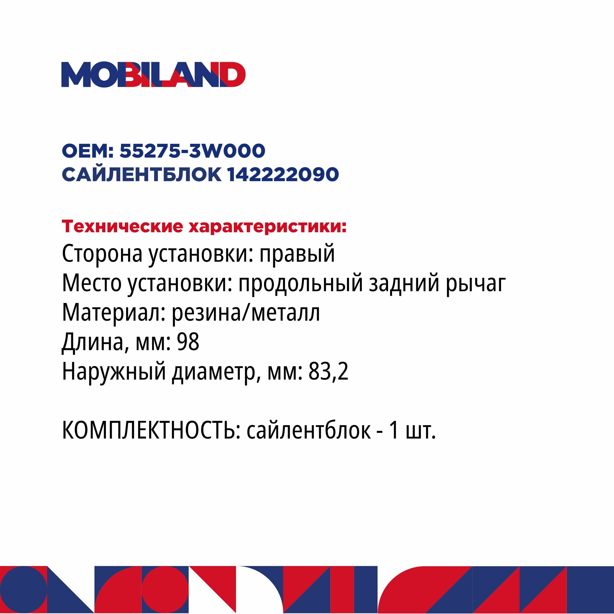 Купить Сайлентблок правый рычага продольного заднего для а/м KIA SPORTAGE III; HYUNDAI ix35, MOBILAND 142222090 с доставкой по всей России.