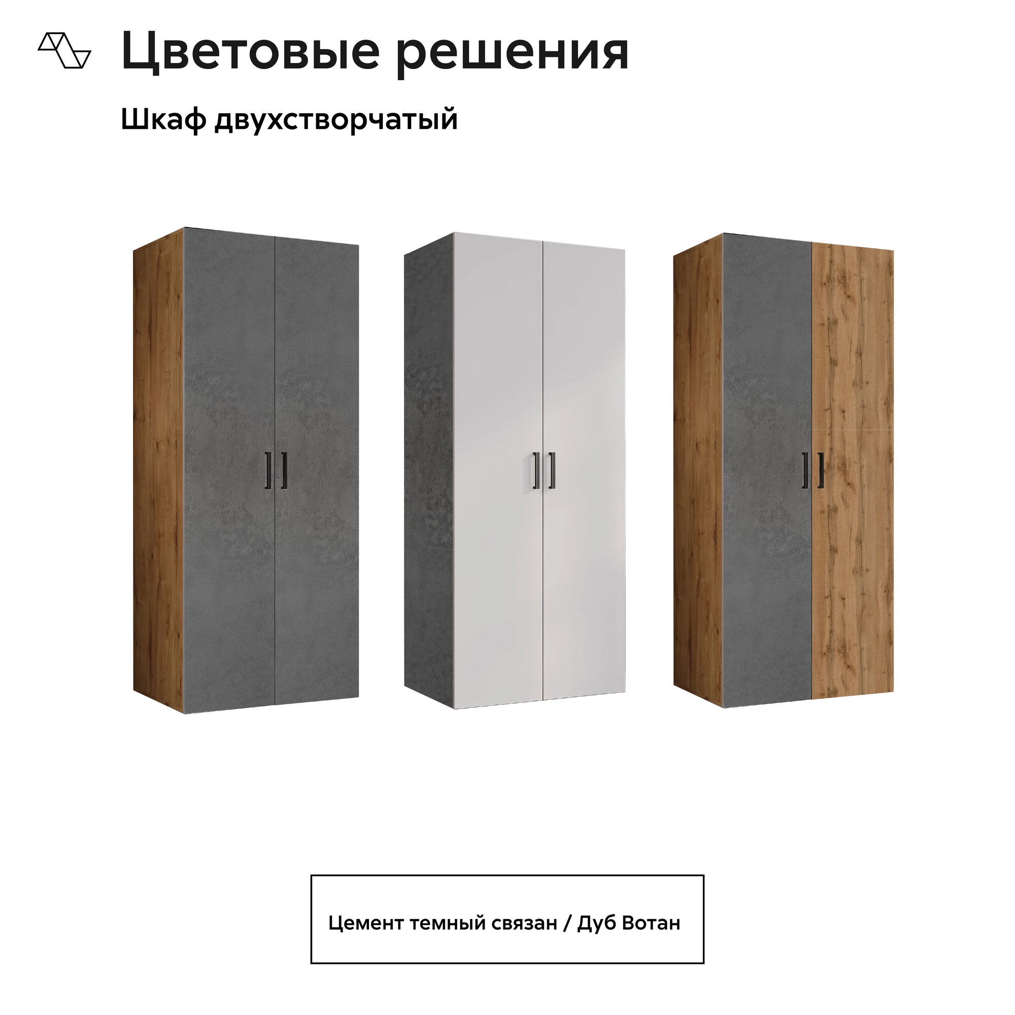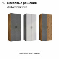 Материал корпуса: ЛДСП 16 мм, Материал фасада: ЛДСП, фурнитура: Ручка-скоба 128 мм, декор в тон корпуса, пластик Опоры: Цоколь, подпятник, пластик Штанга: Стационарная, металл