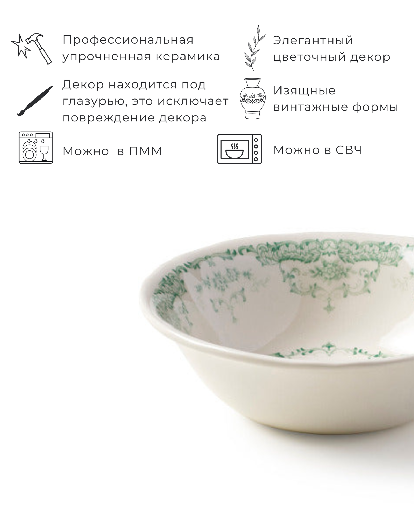 использование в СВЧ, мытье в посудомоечной машине, с декором