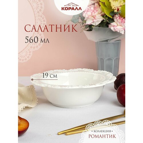 Белый фарфоровый салатник 560 мл из коллекционной серии посуды "Romantic".