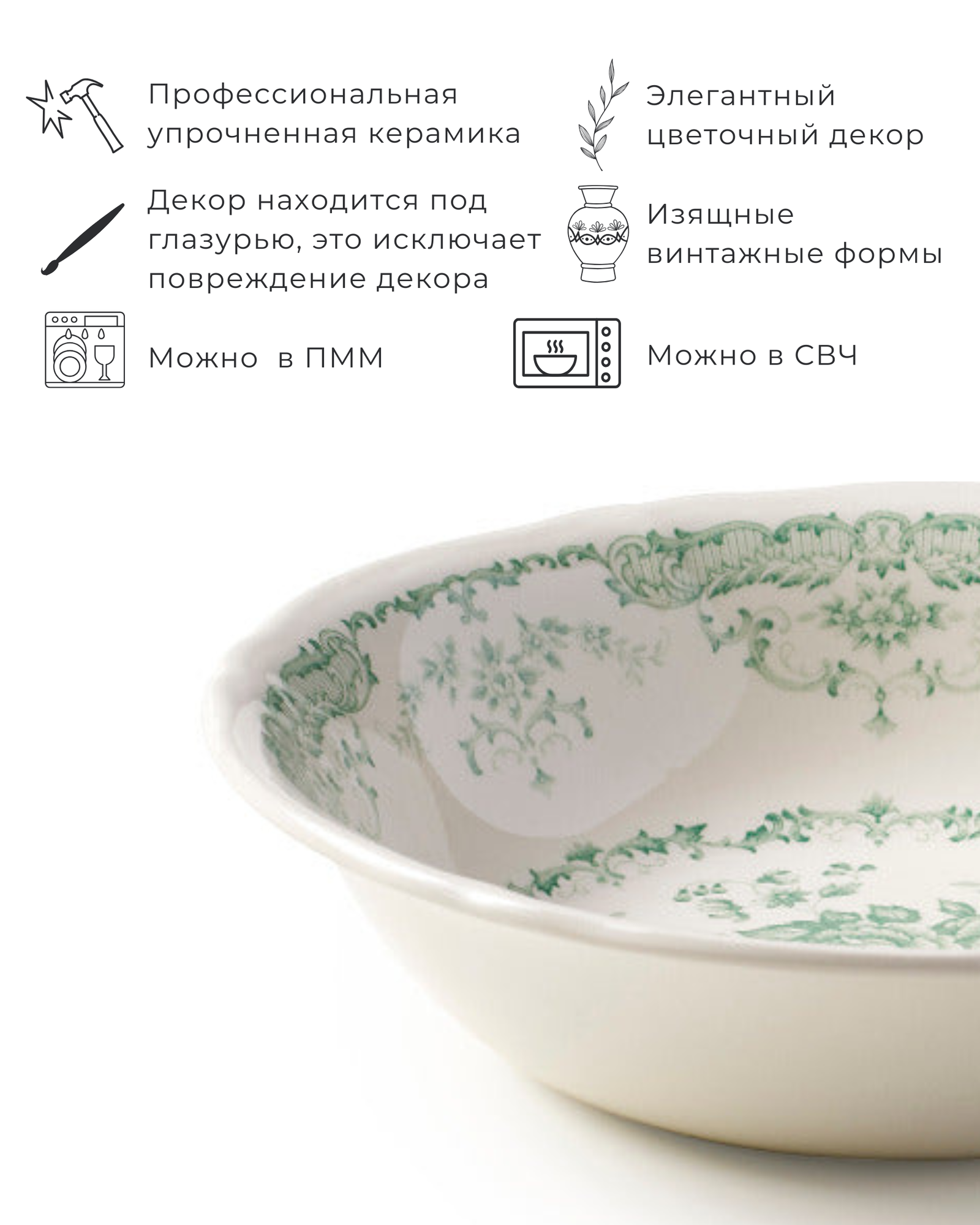 использование в СВЧ, мытье в посудомоечной машине, с декором