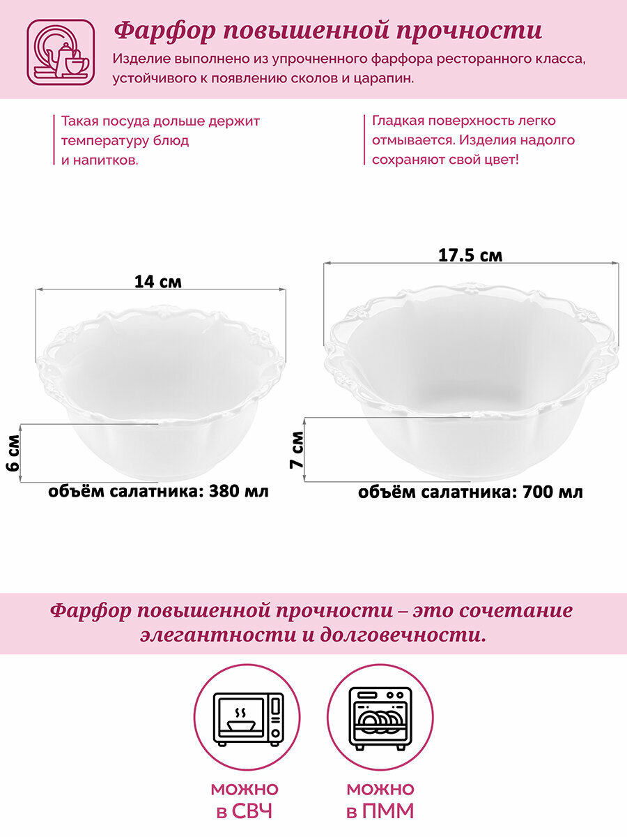 | Дополнительная информация | Салатник "Галант" 17,5х17,5х7 см 700 мл, волнистый край, фарфор |