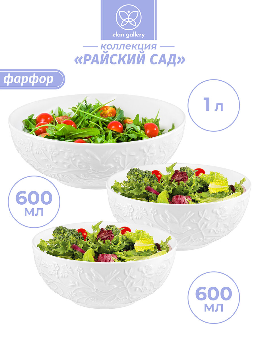 Салатник 3 шт Elan Gallery Райский сад, 1 л, 2 шт по 600 мл, набор: сравнение цен, характеристики, фото, актуальное наличие и цены.