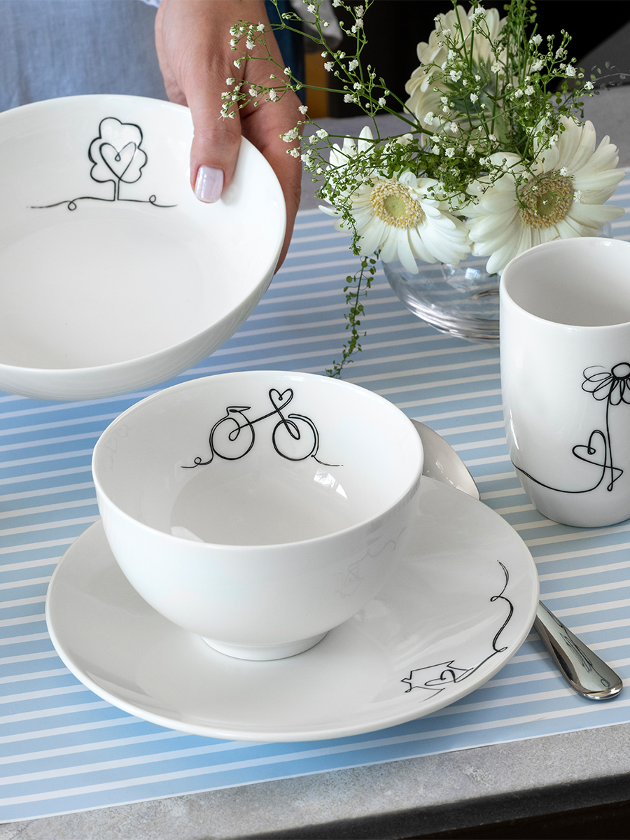 Это качественный и стильный аксессуар для повседневного использования — идеален в качестве миски для хлопьев, супницы или различных закусок. Красивое послание, прекрасный материал: черная филигранная надпись на салатнике придает ему элегантный вид и в то же время передает позитивный посыл. Эта тарелка для салата станет идеальным подарком для друзей или семьи, которые ценят эстетику и оригинальные высказывания. Закрепите современный дизайн минималистичным рисунком! Statement Lines: вневременная коллекция. Она вписывается во многие коллекции и предлагает множество вариантов комбинирования.
