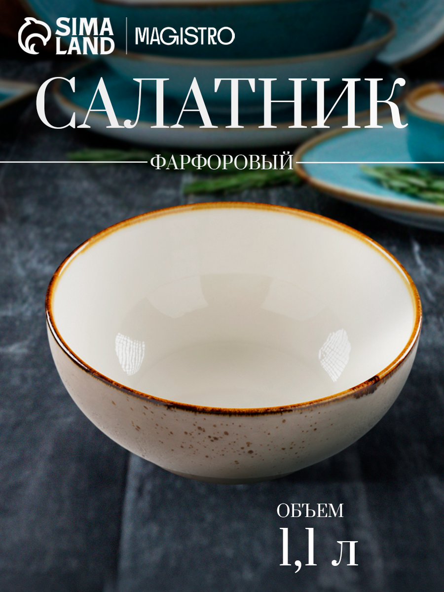 Салатник фарфоровый для подачи и сервировки, тарелка глубокая Magistro «Церера», 1,1 л, 18,5×7,5 см, цвет коричневый: сравнение цен, характеристики, фото, актуальное наличие и цены.