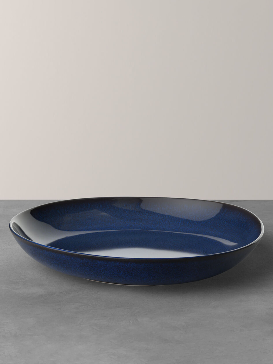Салатное блюдо для подачи основных блюд, гарниров, овощей и фруктов На большом салатном блюде Lave bleu вы можете подать на стол основные блюда, любые гарниры, овощи и фрукты. Коллекция Lave от Villeroy & Boch - это стильные предметы из керамики, которые имеют свой собственный, самобытный характер и напоминают о старинных ремеслах, гончарных кругах и о летнем отдыхе в нетронутых ландшафтах Скандинавии. Коллекция Lave добавляет изюминку оригинальному очарованию керамики своими мягкими плавно изгибающимися линиями, органичными формами и естественными оттенками трендовых цветов.