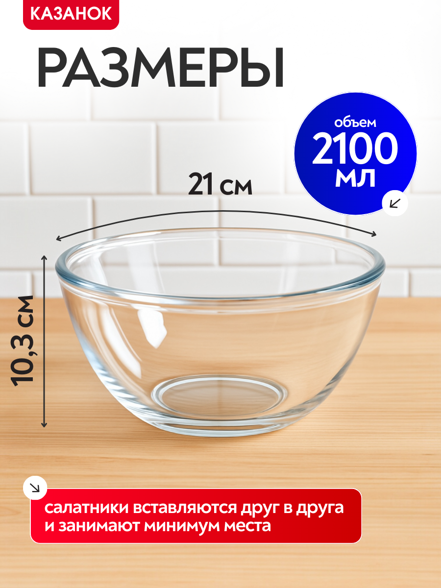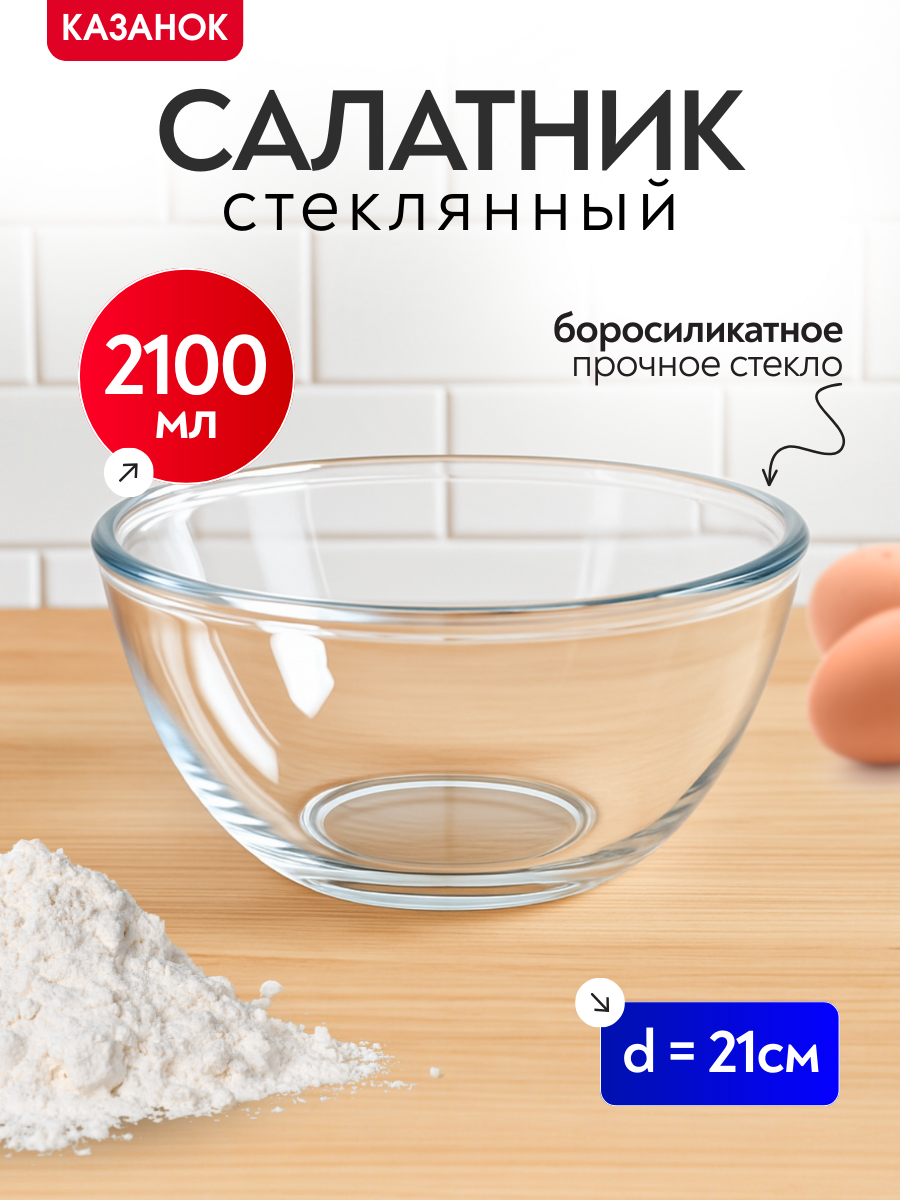 Салатник миска 2,1л стеклянная жаропрочная для теста, холодных и горячих блюд: сравнение цен, характеристики, фото, актуальное наличие и цены.