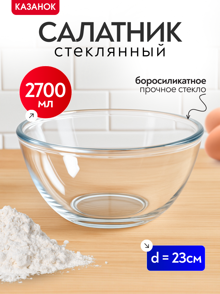 Салатник миска 2,7л стеклянная жаропрочная для теста, холодных и горячих блюд: сравнение цен, характеристики, фото, актуальное наличие и цены.