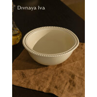 Купить Салатник, тарелка глубокая для подачи второго, твердый фарфор, диаметр 20 см, высота 8,5 см, узор горохи с доставкой по всей России.