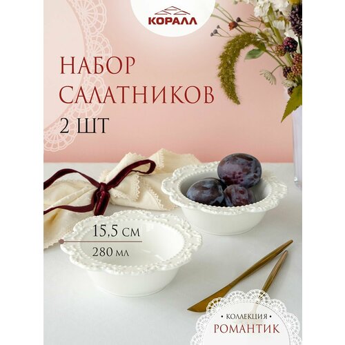 Набор белых фарфоровых салатников 280 мл - 2 шт. из коллекционной серии посуды "Romantic".