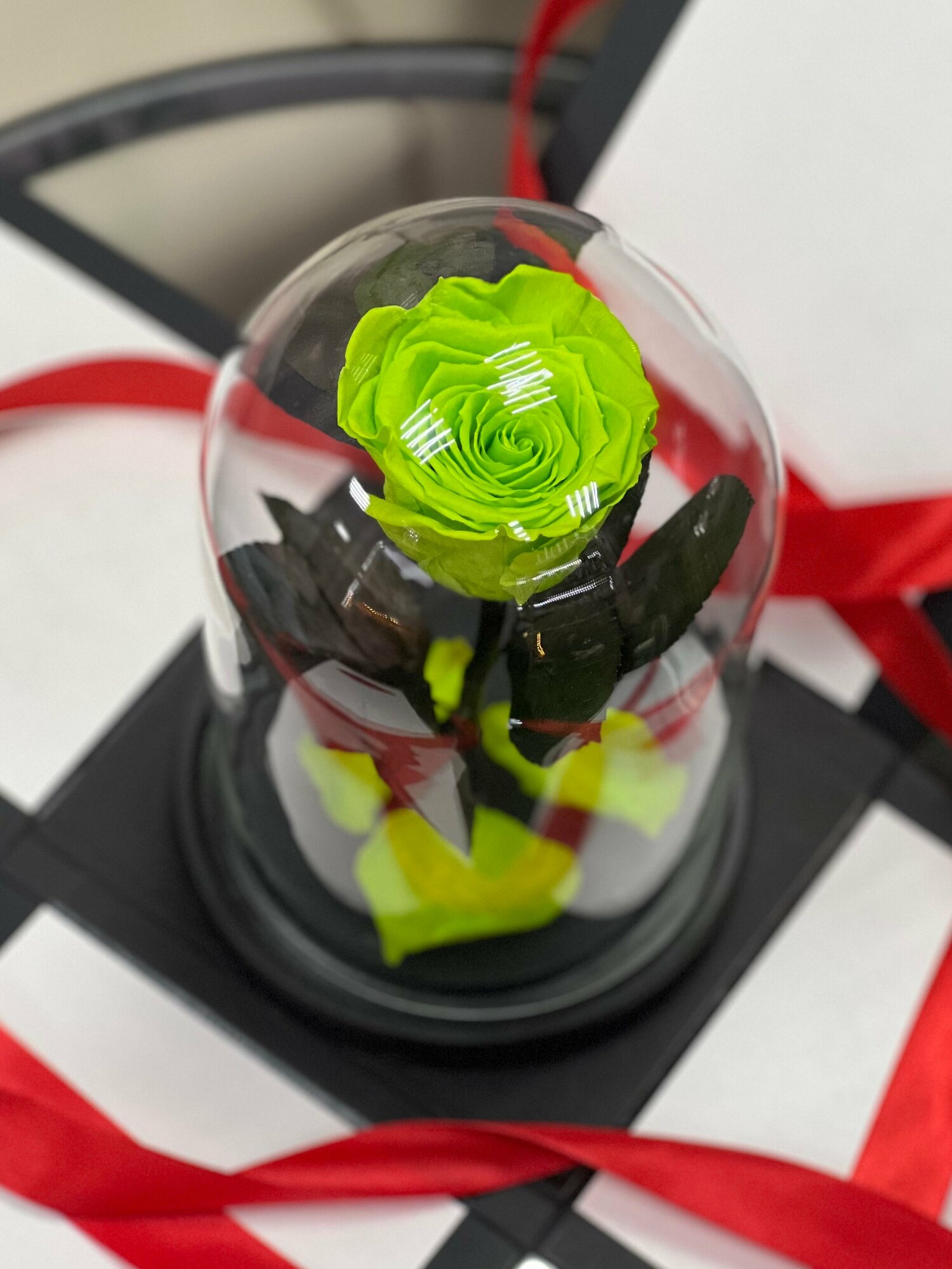 Купить Салатовая роза в колбе «Мини» в подарочной коробке с вау-эффектом /22 см/ Живет 5 лет ! с доставкой по всей России.