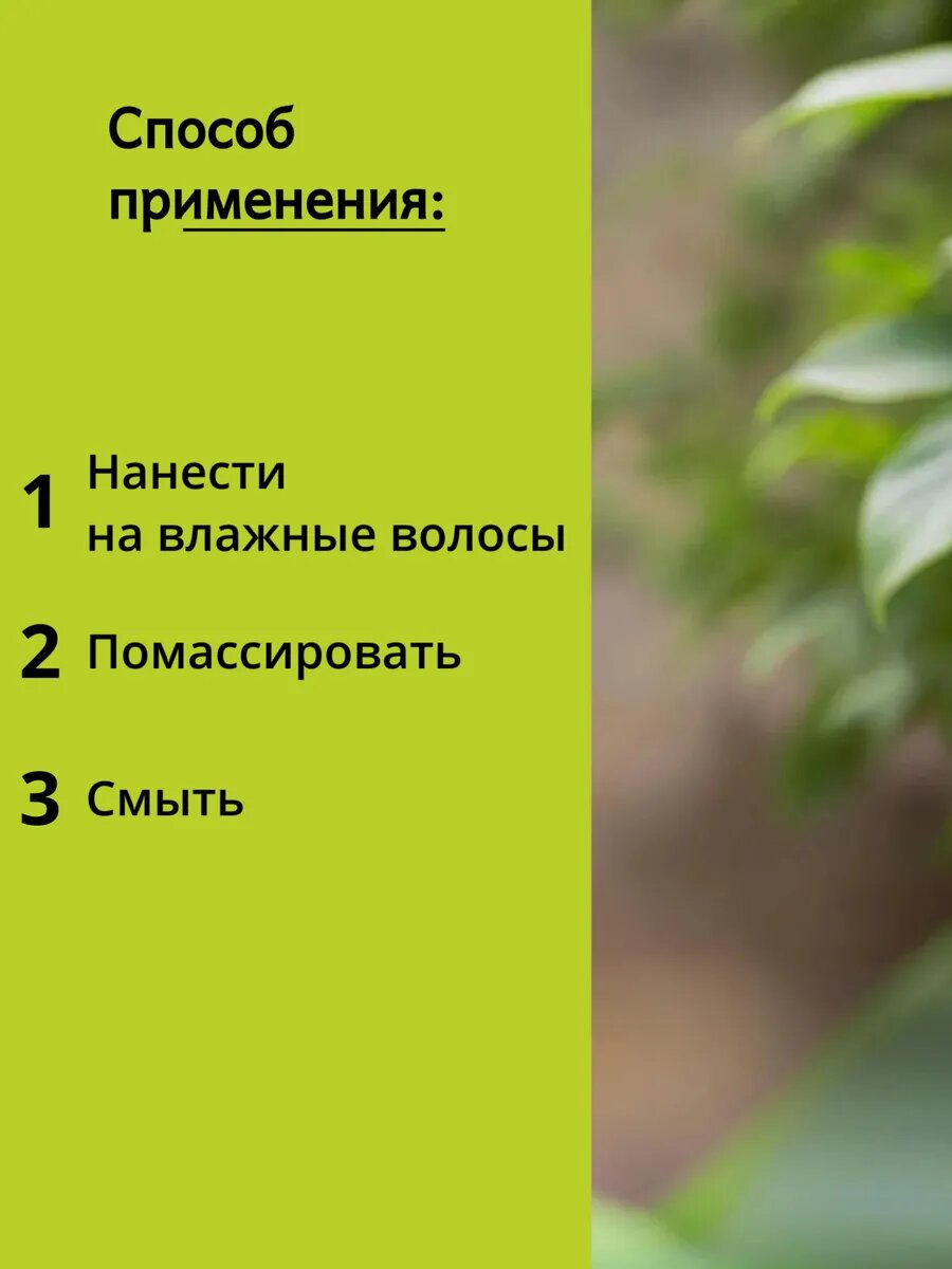 Применение: Нанесите бальзам на вымытые волосы, равномерно распределите по всей длине.