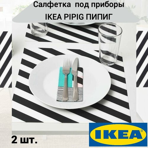Если вы стремитесь к созданию элегантной обстановки за столом, то эта пара черно-белых полосатых сервировочных салфеток IKEA PIPIG пипиг будет прекрасным выбором!