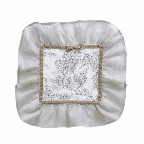 Салфетка изо льна от итальянского бренда Blanc Mariclo в стиле Shabby Chic (дословно переводится как "потертый шик"). На белом фоне - печатный английский рисунок, серого цвета. Салфетка отделана накладной тесьмой из велюра с бантом и рюшей по канту серого цвета. В коллекции имеется также: Чехол на стул без подушки Blanc Mariclo 40*40*50 см, 41847 Подхват для штор Blanc Mariclo 23*71 см, 41828