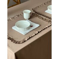 Салфетка с рюшами из хлопка; Хлопковая салфетка с кружевом; Хлопковая салфетка с рюшами; Скатерть льняная; Скатерть из умягченного льна; Скатерть с рюшами; Скатерть на стол; Скатерть праздничная; Скатерть лен 100%; Скатерть к пасхе; Скатерть интерьерная льняная;