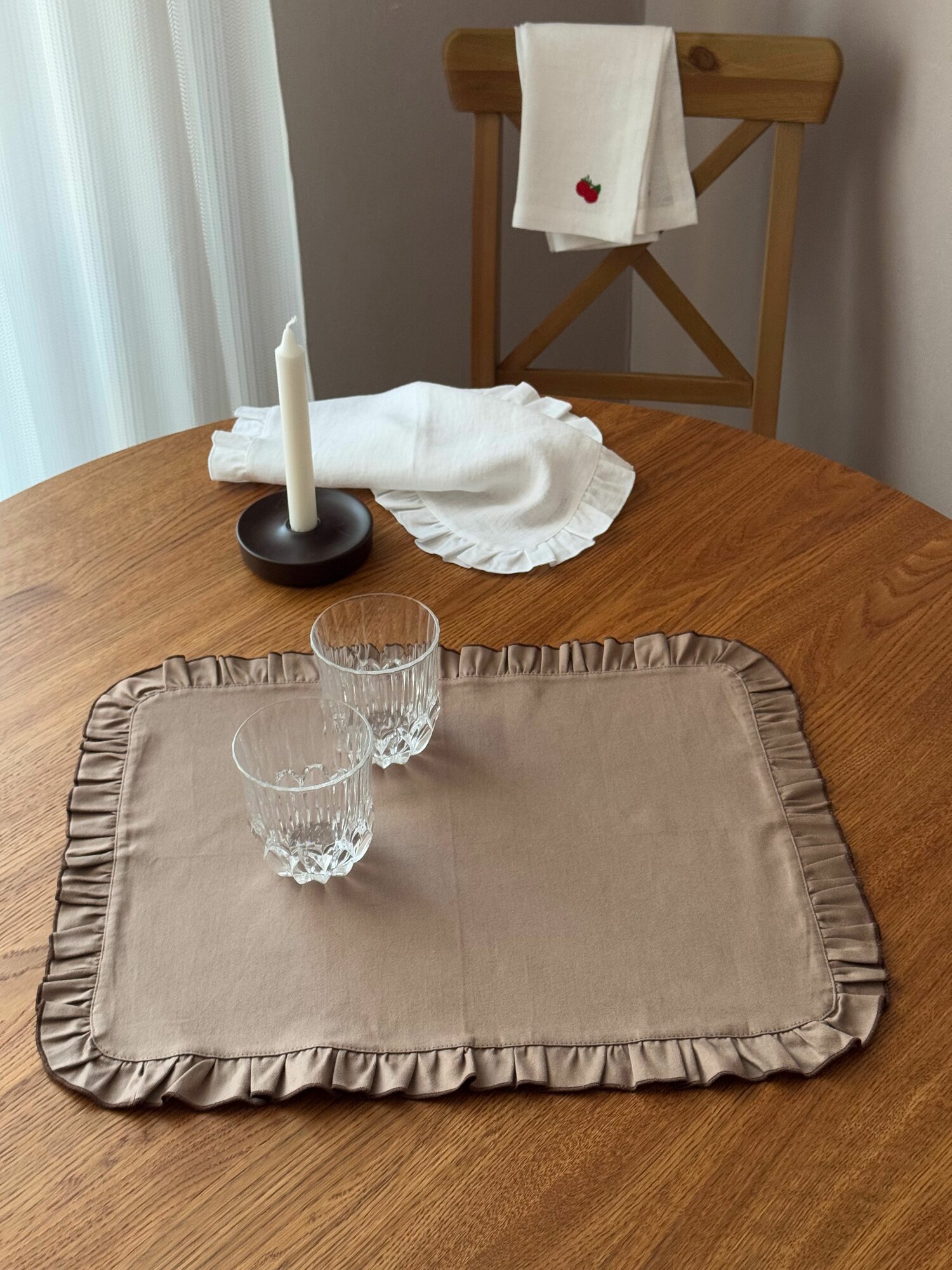 Салфетка сервировочная с рюшами из 100% хлопковой ткани.