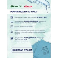 Размер: 40 х 38 см. Толщина: 0,7 мм. Вес одной салфетки: 21 грамм (плотность 140 гр/кв.м). Максимальная впитываемость в сухом состоянии: 350% от собственного веса. Дозировка на 1 ед: 40 мл моющего раствора. Количество машинных стирок: до 500 при температуре 60°C и соблюдении рекомендаций Vileda Professional