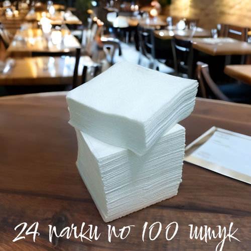 Салфетки бумажные белые 2400 шт, 24х24 см (24 упаковки по 100 шт) однослойные, сервировочные Бумажные салфетки предназначены для сервировки стола и декорирования блюд. Они имеют большой спрос в разных сферах, включая домашние условия, поездки, праздники, офисы и учреждения общественного питания, такие как столовые, пиццерии, кафе и рестораны.