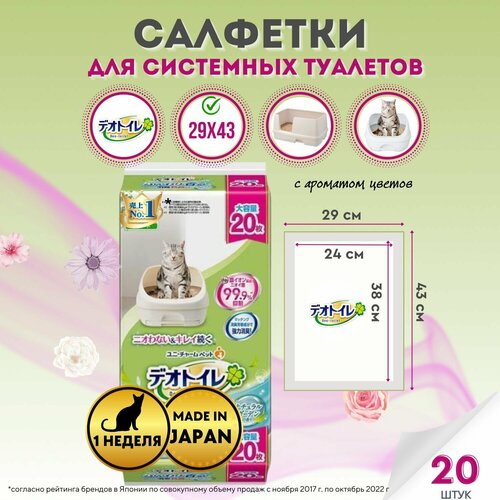 Салфетка для кошачьего системного туалета Deo-toilet UNICHARM недельная, аромат цветов, 20шт
