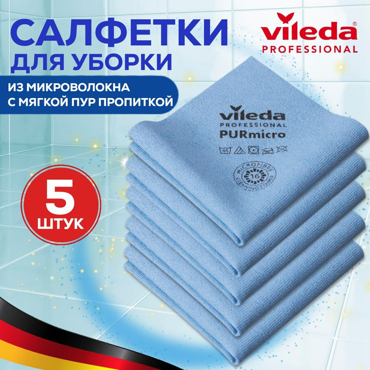 Салфетки для уборки PURmicro Active Vileda Professional, 35х38 см, 5шт синяя, ПУРмикро Виледа: сравнение цен, характеристики, фото, актуальное наличие и цены.