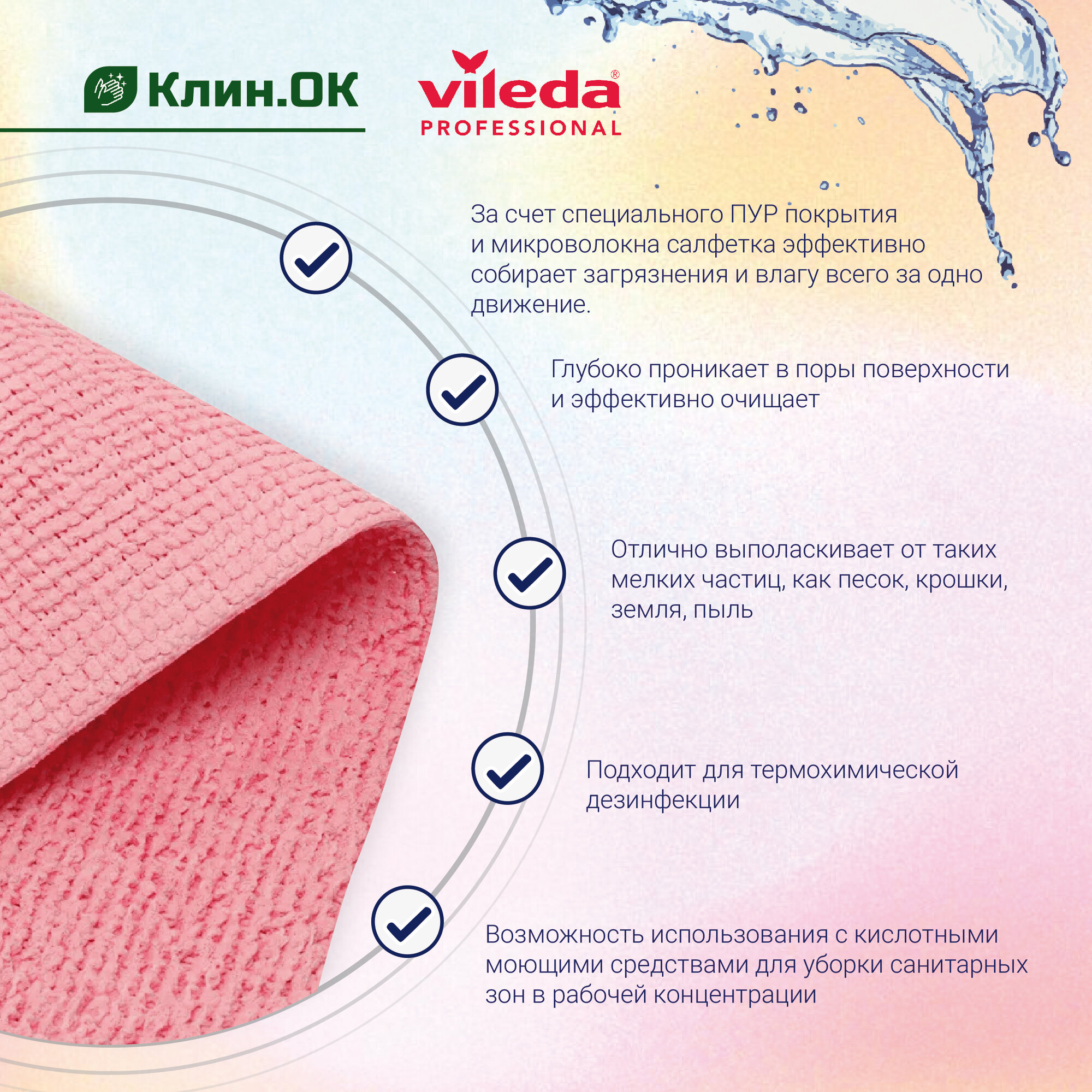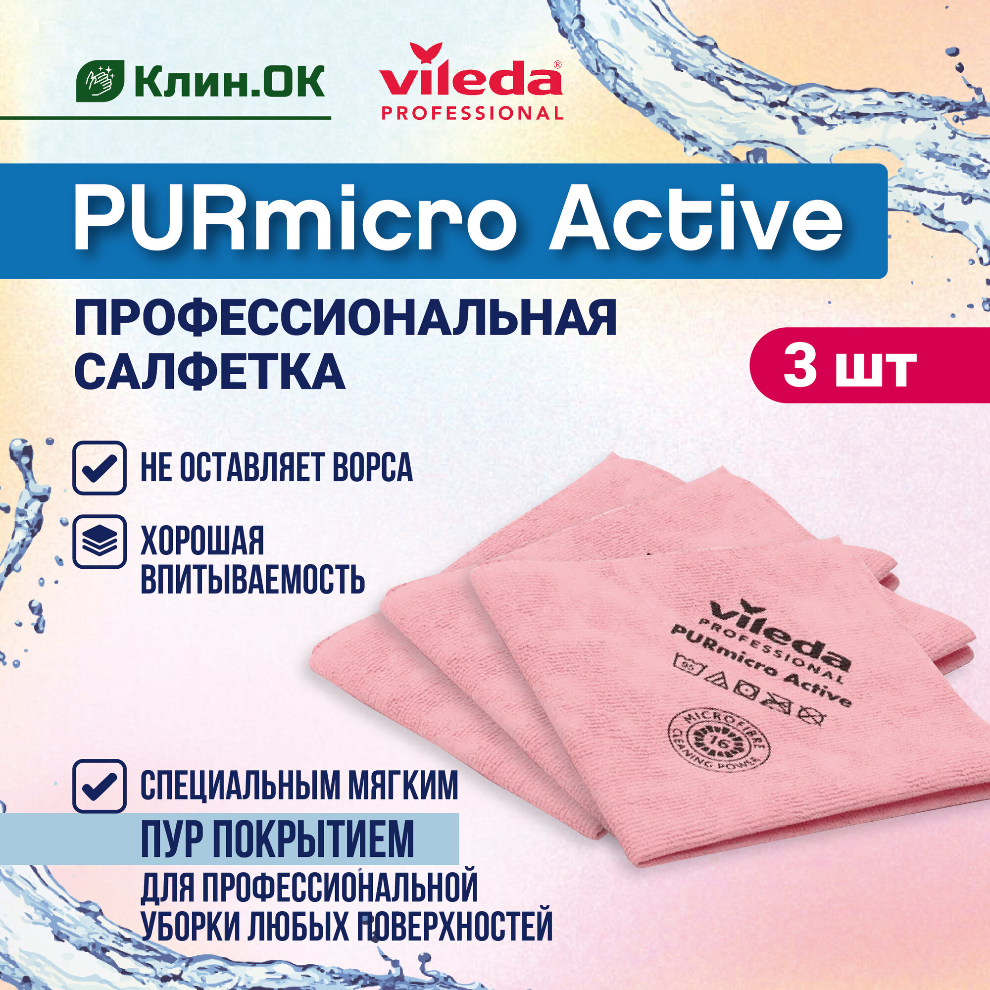 Салфетки для уборки Purmicro Active Vileda Professional, 38х35см, красный, 3 шт: сравнение цен, характеристики, фото, актуальное наличие и цены.