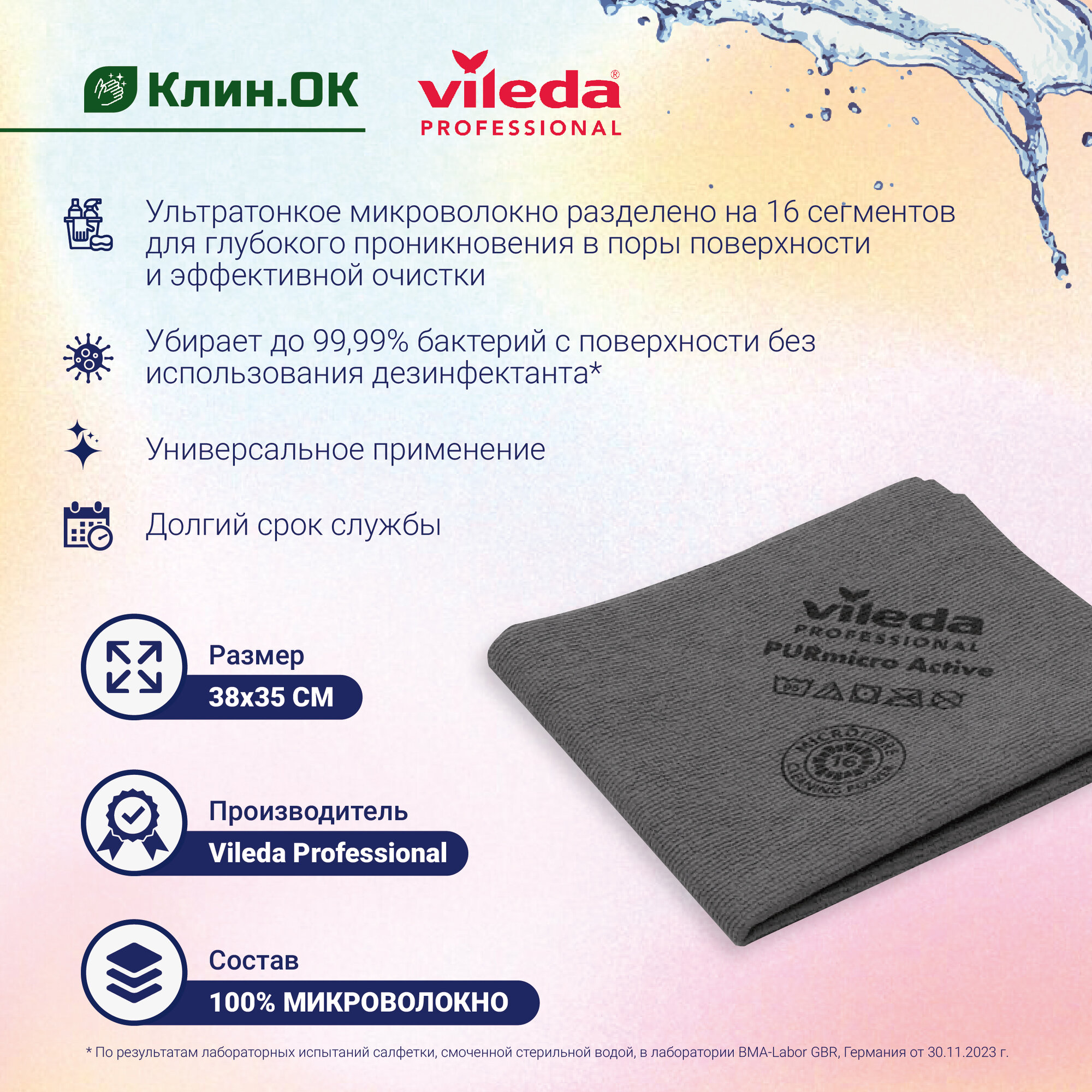 Салфетки для уборки Purmicro Active Vileda Professional, 38х35см, серый, 3 шт: сравнение цен, характеристики, фото, актуальное наличие и цены.