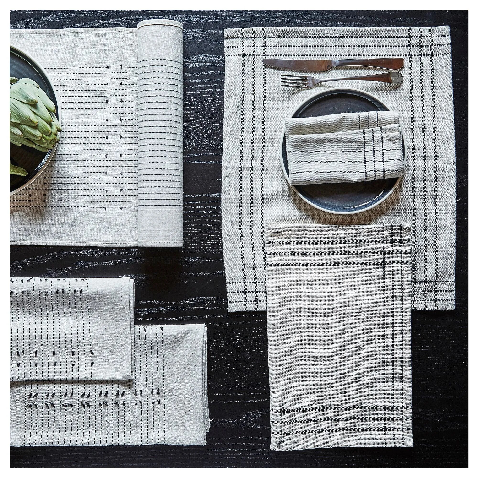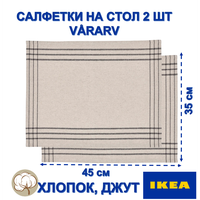 Салфетки икеа VÅRARV изготовлены из высококачественного хлопка (85%) и джута (15%), что обеспечивает прочность и долговечность. Плетеная фактура и бежевый с серыми полосками дизайн придают салфеткам изысканный и стильный вид.