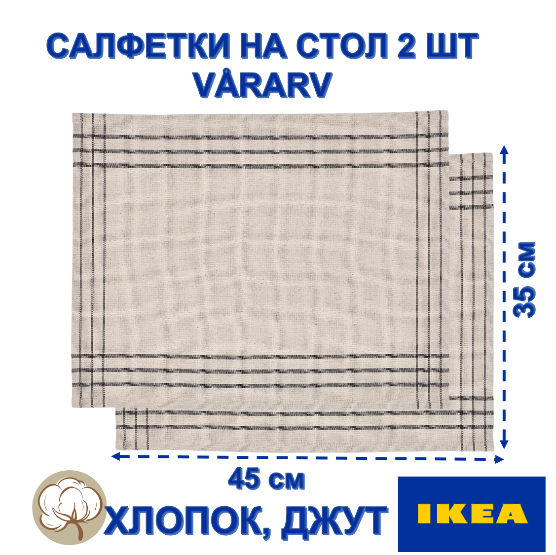 Купить Салфетки икеа VÅRARV, хлопок, джут, термостойкие, бежевый с серыми полосками, 45х35 см с доставкой по всей России. Салфетки икеа VÅRARV, хлопок, джут, термостойкие, бежевый с серыми полосками, 45х35 см: сравнение цен, характеристики, фото, актуальное наличие и цены.