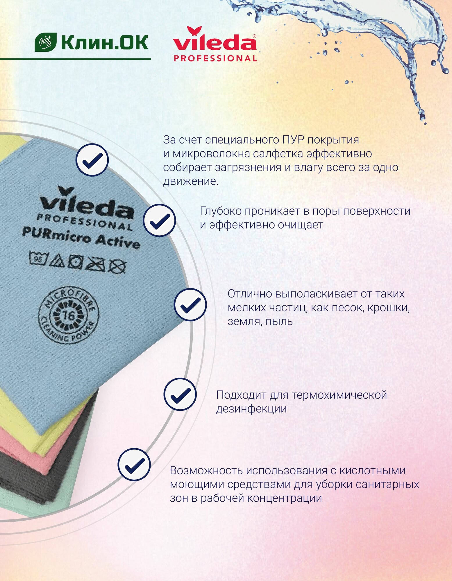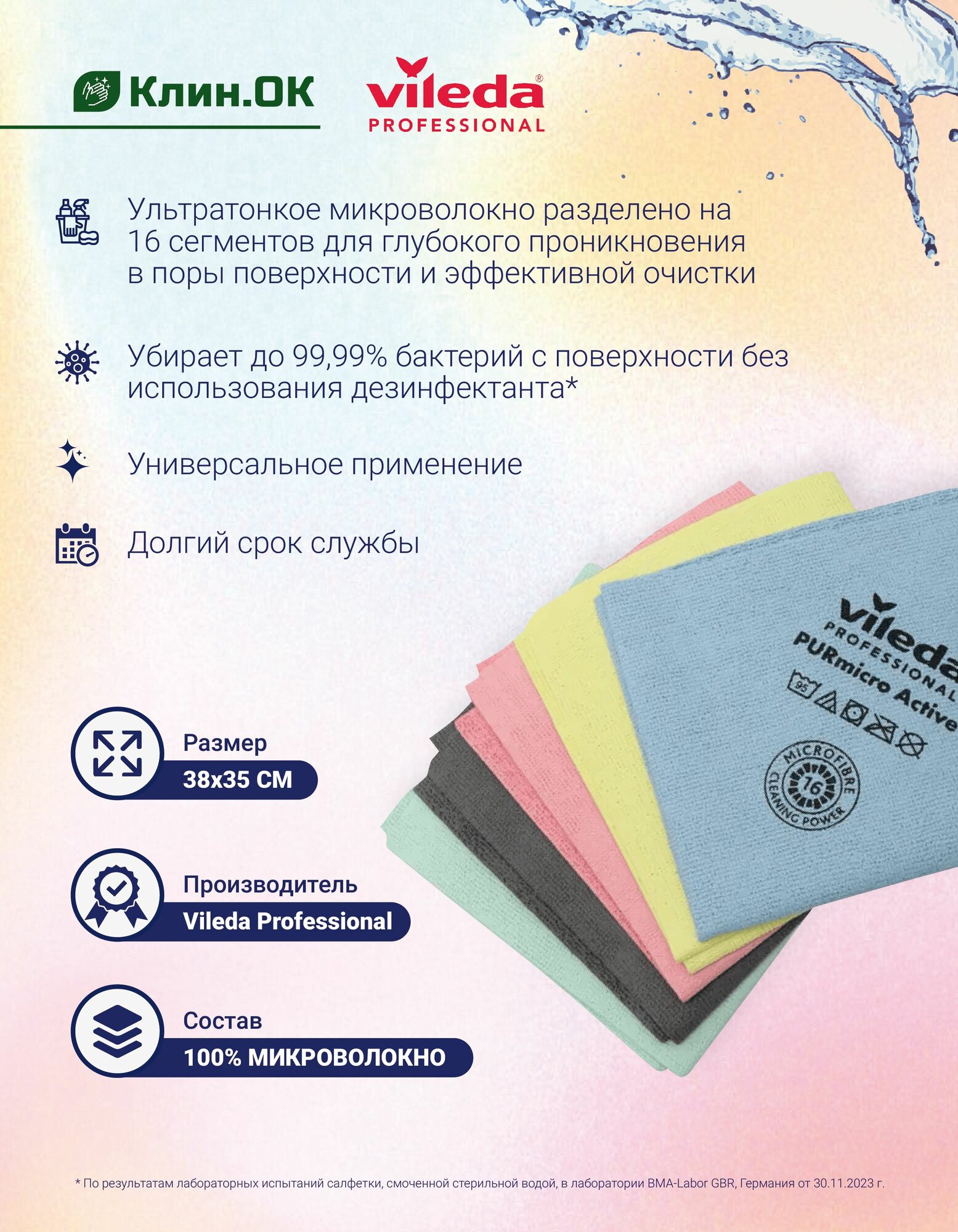 Салфетки из микрофибры, тряпки для уборки многоразовые Purmicro Active Vileda Professional, универсальная тряпочка для стекол и зеркал, 38х35см, разноцветный, 5 шт: сравнение цен, характеристики, фото, актуальное наличие и цены.