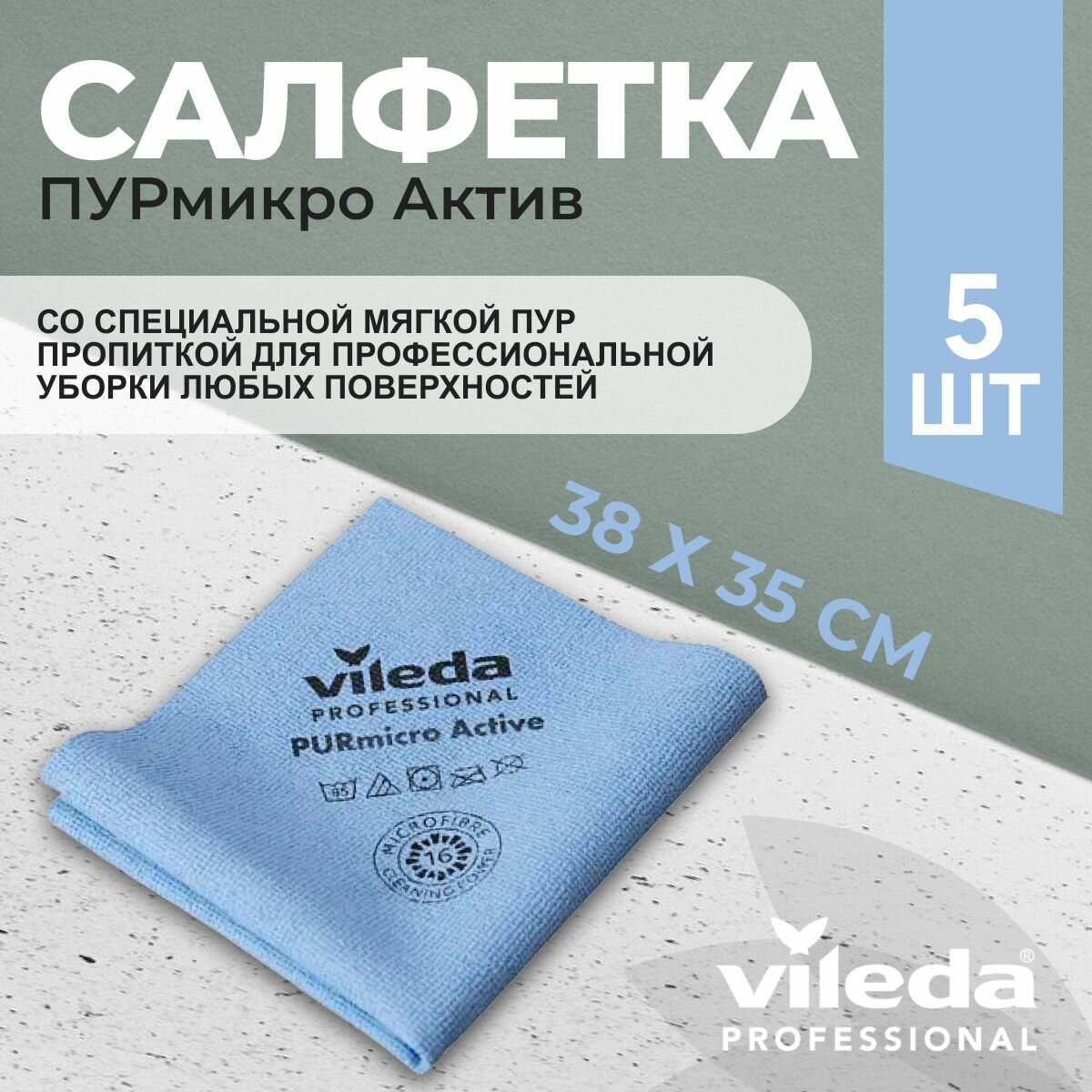 Салфетки профессиональные для уборки из микроволокна Vileda ПУРмикро Актив PURmicro Active 38х35 см, голубой, 5 шт.: сравнение цен, характеристики, фото, актуальное наличие и цены.