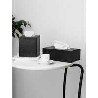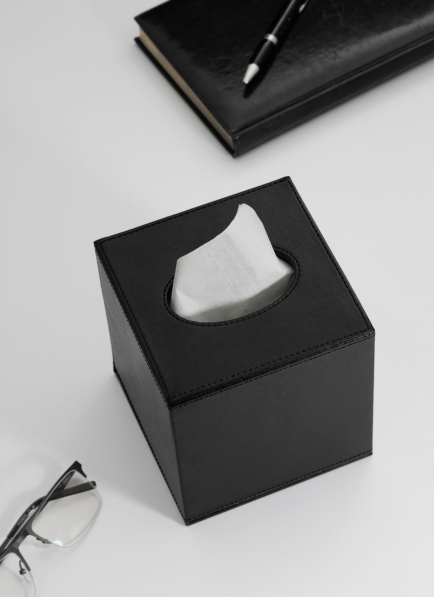 Устали от вида пестрых коробок с бумажными салфетками? Диспенсер для салфеток поможет справиться с визуальным шумом и украсит интерьер в кухне, гостиной, кабинете или ванной. Бокс для бумажных салфеток может использоваться для оформления интерьера студии, салона красоты, ресторана, кафе или гостиничного номера. Органайзер для салфеток изготовлен из искусственной кожи и МДФ. Нижняя крышка черной салфетницы имеет магнитное крепление.